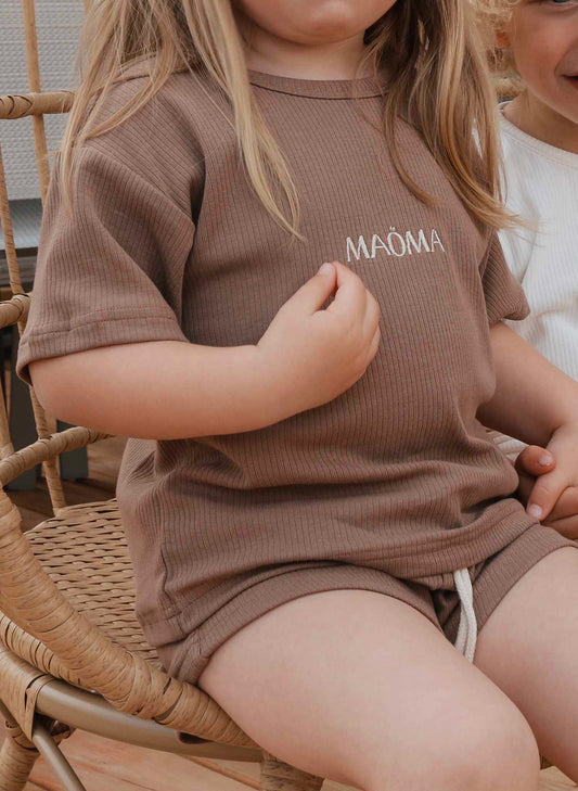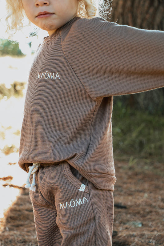 Ensemble gaufré à 2 pièces manches longues pour enfant - Marron