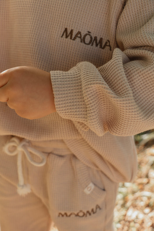 Ensemble gaufré à 2 pièces manches longues pour enfant - Beige