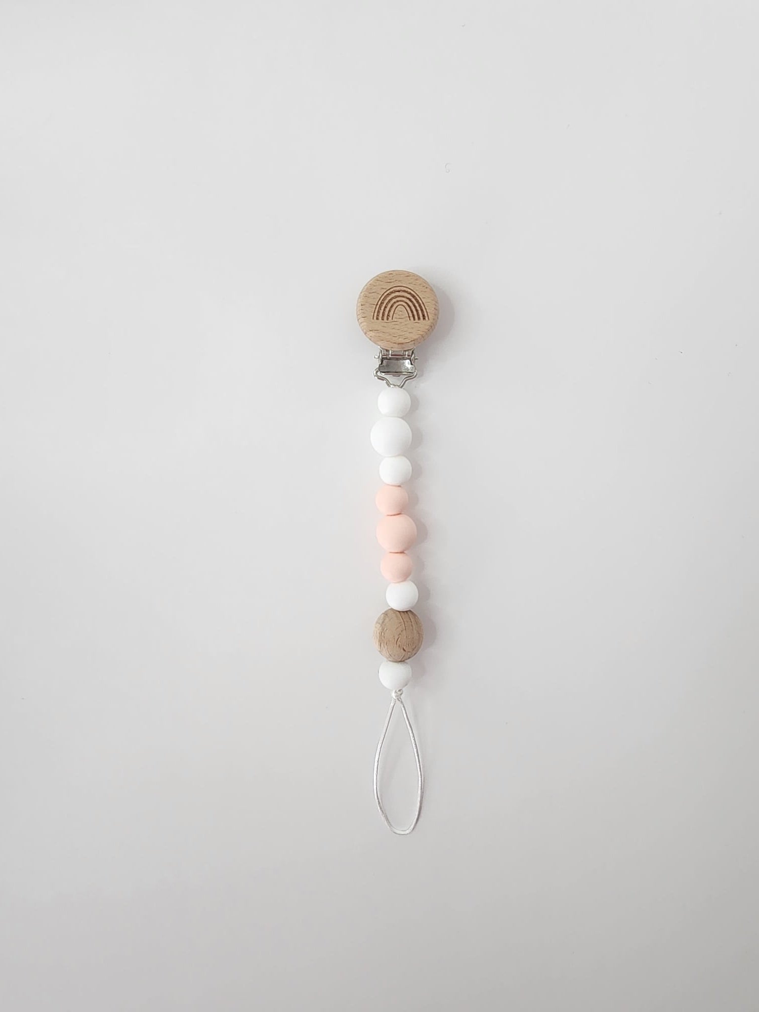 Attache-suce en perles de silicone - Blanc, rose et bois